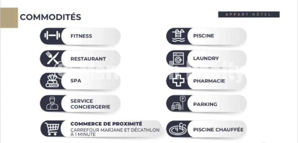 This turnkey project offers fully furnished and equipped apartments, ready for immediate use, with management fully compliant with Moroccan hotel regulations.