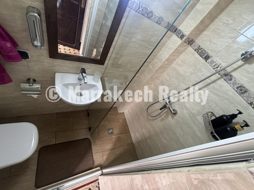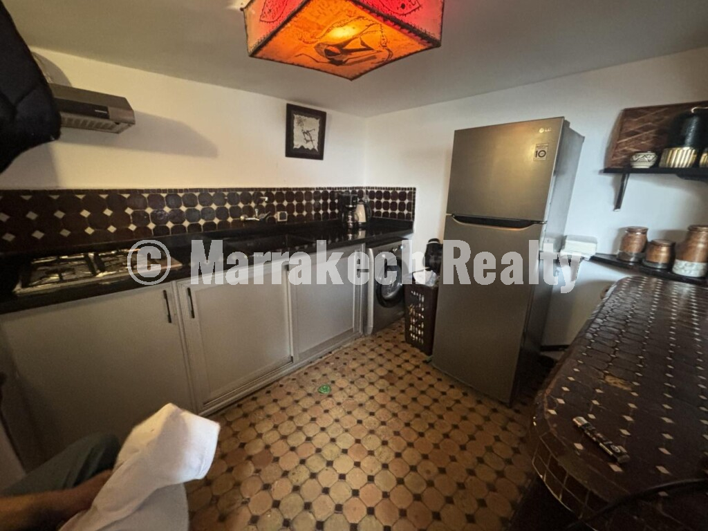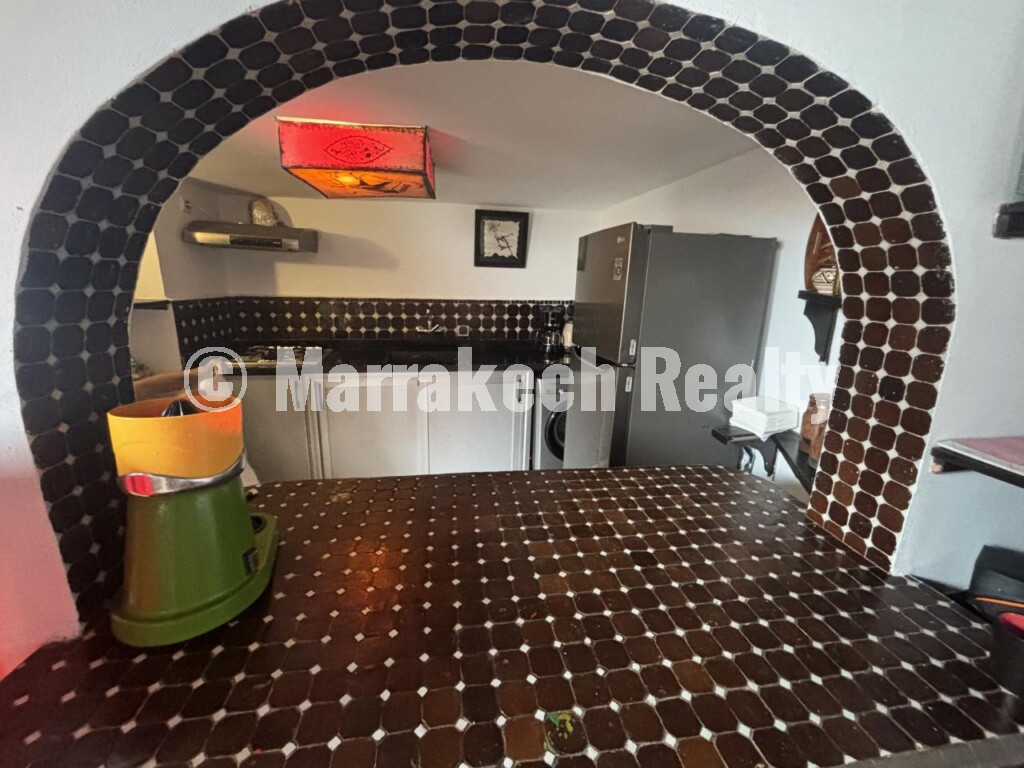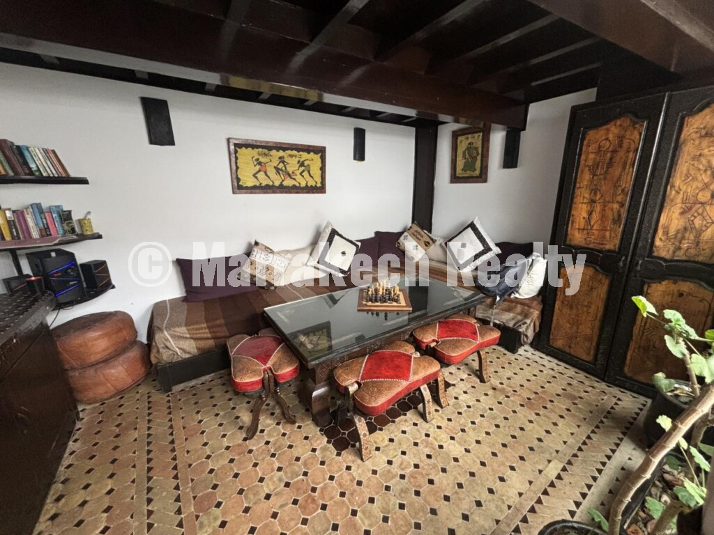 Au troisième étage, vous découvrirez un espace de vie chaleureux avec un salon ouvert baigné de lumière, jouxtant une cuisine entièrement équipée et fonctionnelle, parfaite pour une utilisation résidentielle ou dans le cadre d’une gestion locative, le tout s’ouvrant sur un joli patio aménagé avec soin, qui apporte au cœur du riad une atmosphère paisible et conviviale.